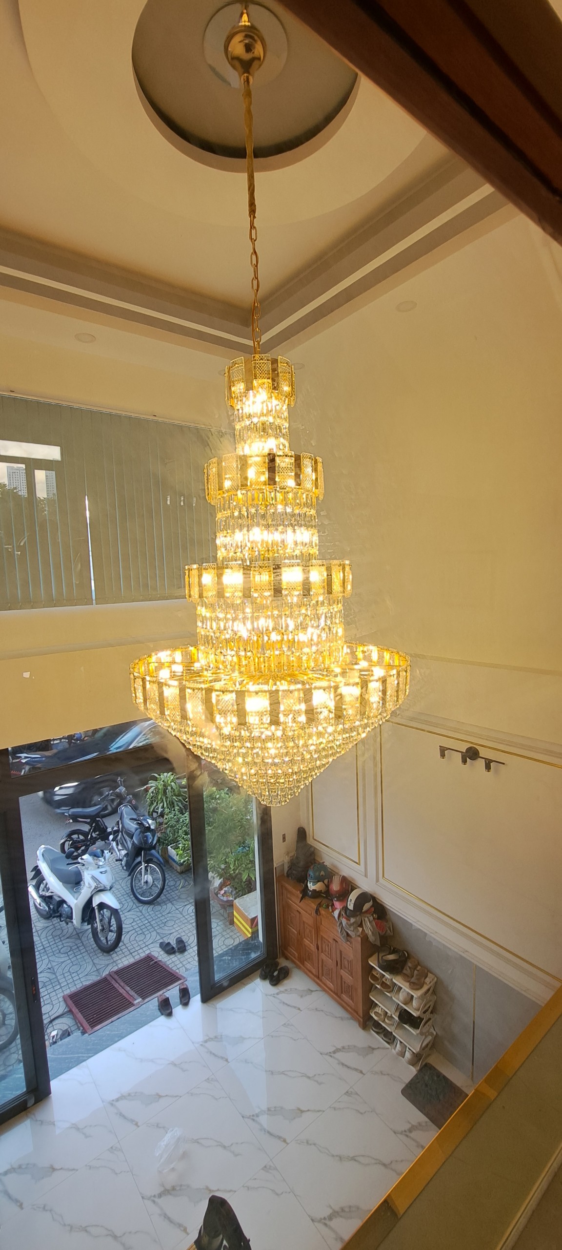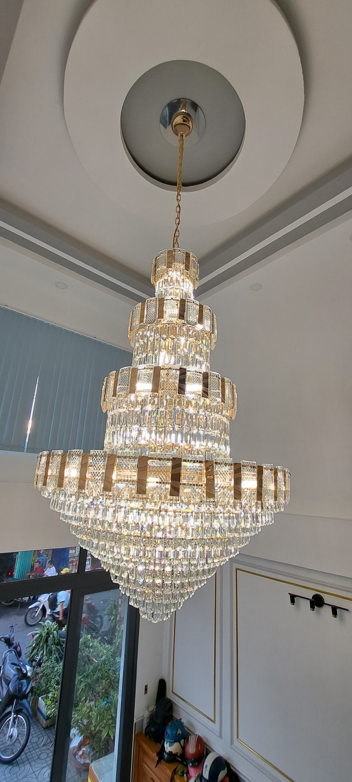 Đèn chùm thả thông tầng pha lê sang trọng là một loại đèn trang trí có kiểu dáng độc đáo, sang trọng, thường được treo thả xuống chiếu sáng xuống phía dưới. Loại đèn này thường thấy sử dụng nhiều nhất ở vị trí phòng khách, sảnh, cầu thang,…