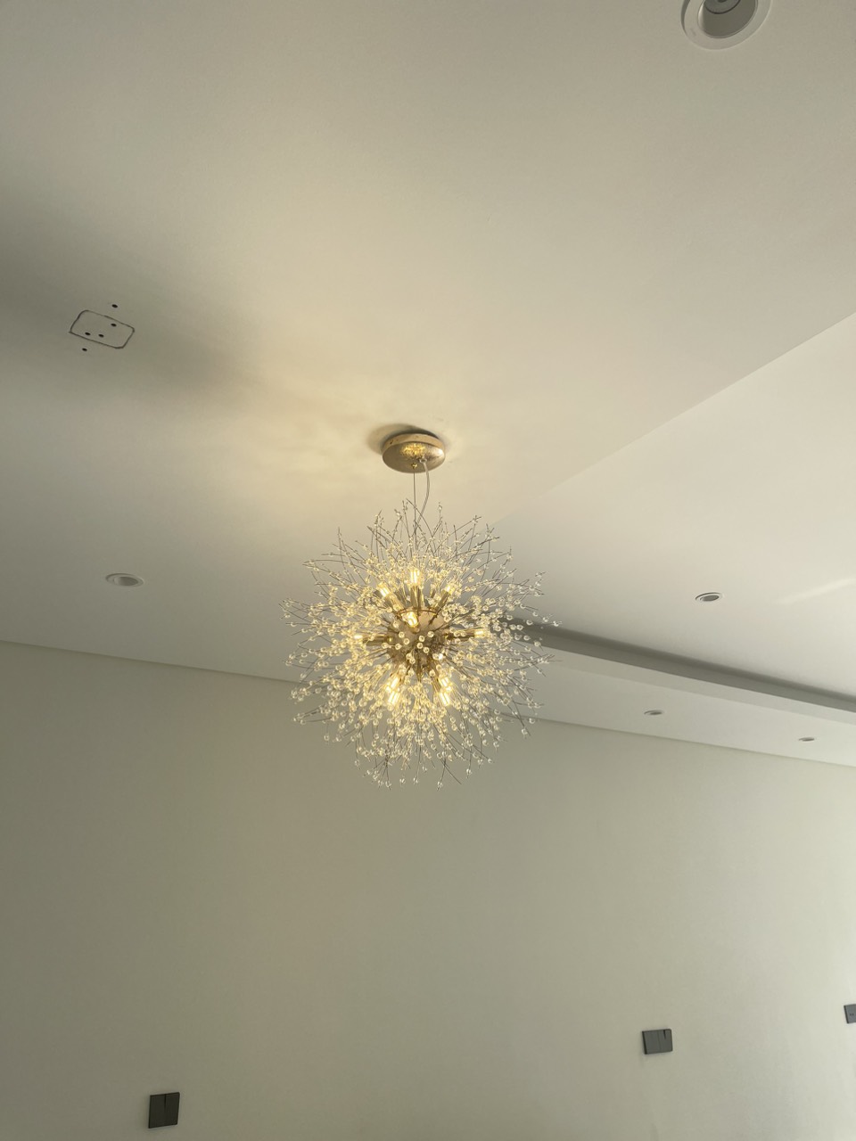 Đèn thả bồ công anh là một loại đèn trang trí có kiểu dáng độc đáo, sang trọng, thường được treo thả xuống hoặc ốp áp sát ngang trên trần và chiếu sáng xuống phía dưới. Loại đèn này thường thấy sử dụng nhiều nhất ở vị trí bàn ăn, phòng khách, sảnh, dọc hành lang lối đi,…