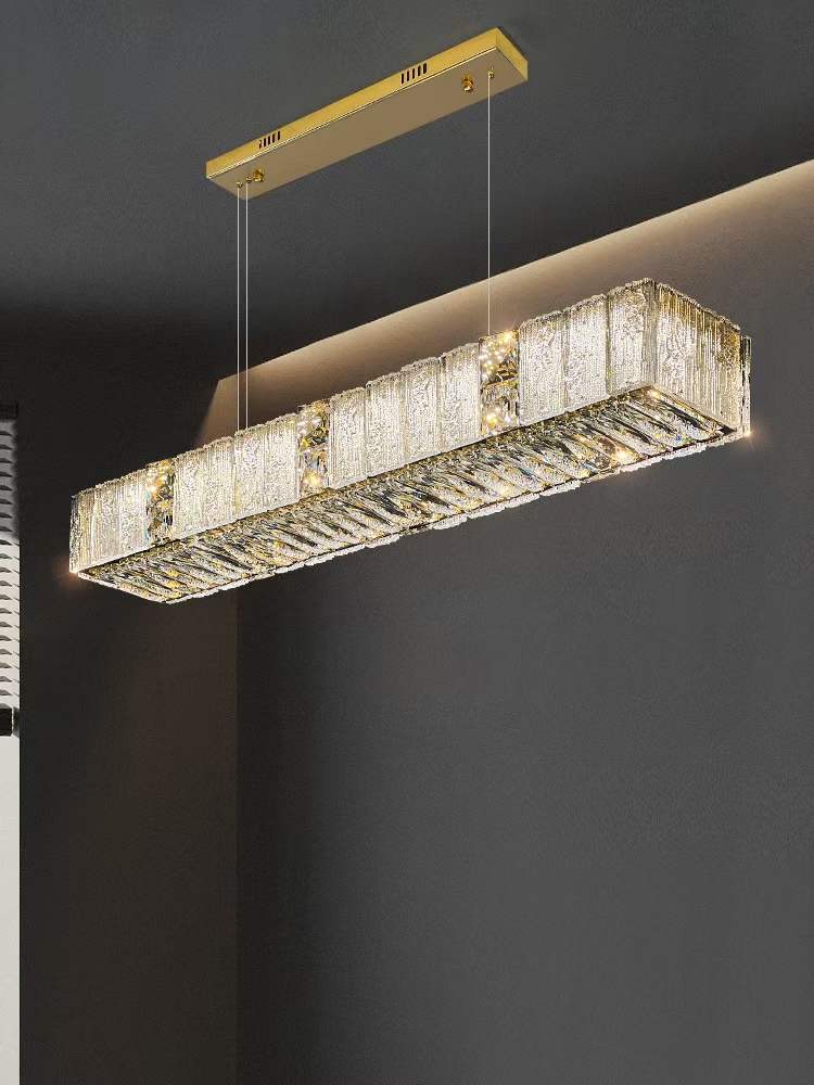 Đèn thả ngang pha lê cao cấp là một loại đèn trang trí có kiểu dáng độc đáo, sang trọng, thường được treo thả xuống hoặc ốp áp sát ngang trên trần và chiếu sáng xuống phía dưới. Loại đèn này thường thấy sử dụng nhiều nhất ở vị trí bàn ăn, phòng khách, sảnh, dọc hành lang lối đi,…