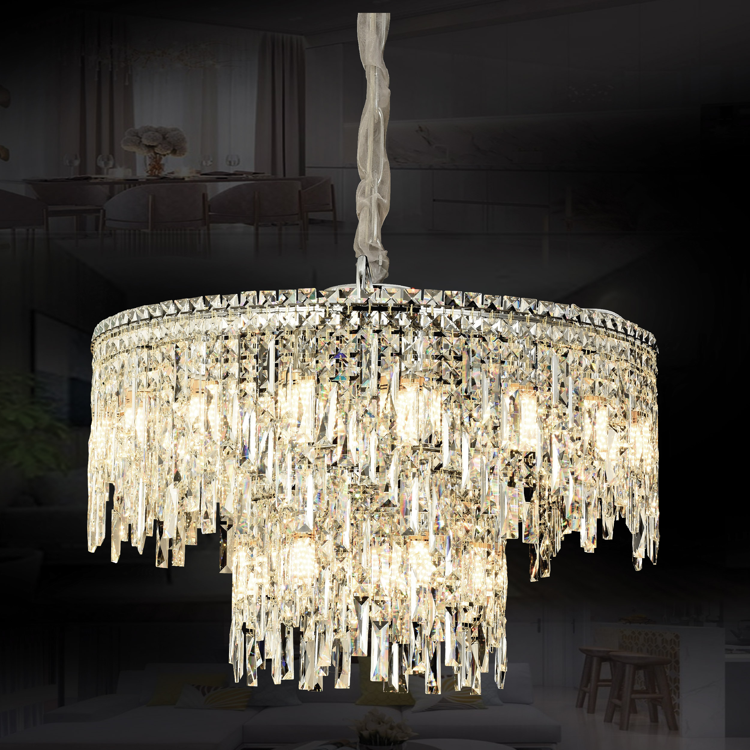 Với sự lộng lẫy và phong cách sang trọng mà những chiếc đèn thả trang trí này sở hữu, khách hàng sẽ dễ dàng cảm nhận được sự cao cấp mà chúng mang đến cho căn phòng của bạn.