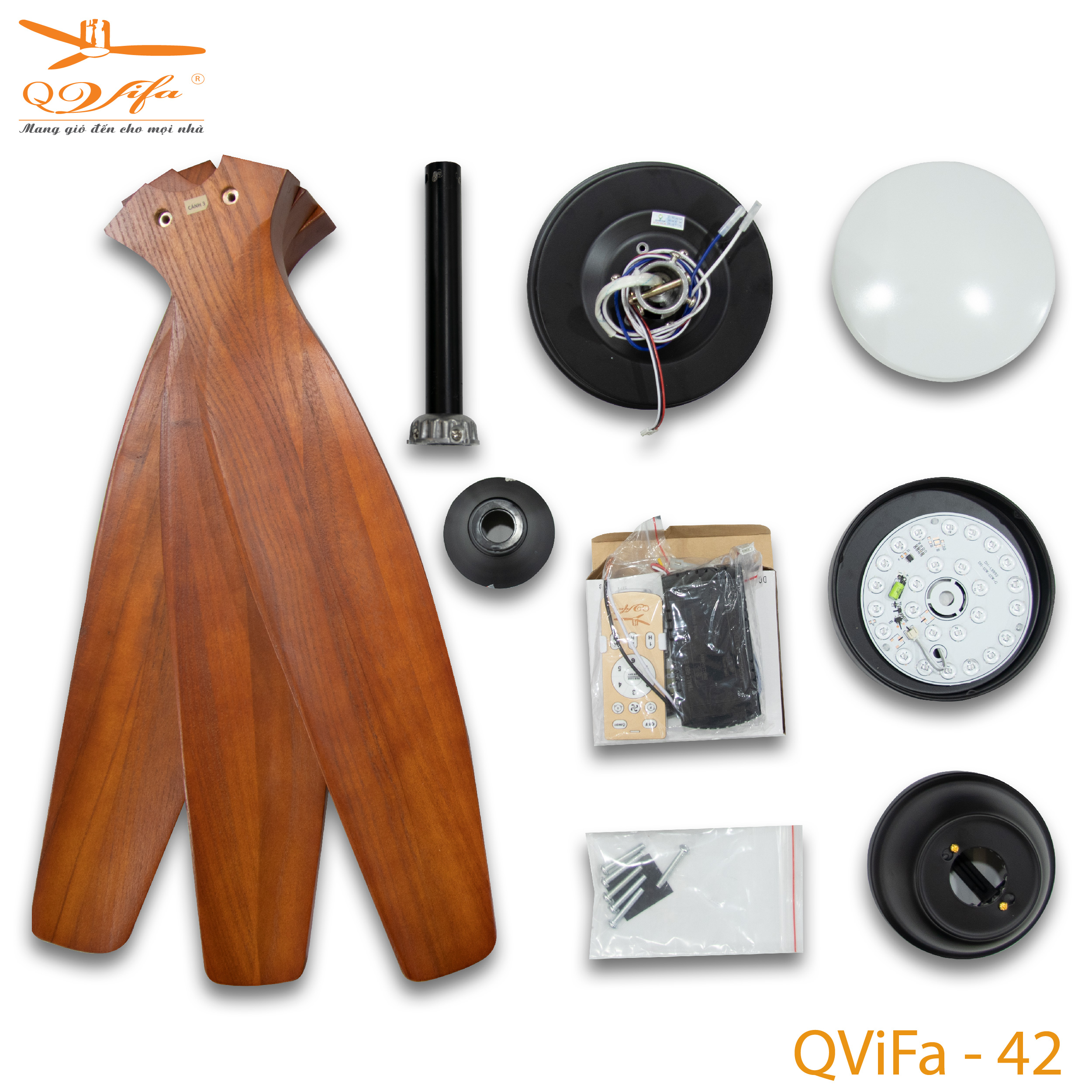Quạt trần cánh gỗ có đèn về bản chất nó vẫn là quạt trần, nhưng được lắp thêm bộ phận là đèn nhằm chiếu sáng nhẹ và tạo vẻ đẹp, tăng công dụng cho quạt. Những bóng đèn này có nhiều hình dáng và ánh sáng khác nhau. Đó có thể là đèn Led, đèn chùm,… và có dạng bông hoa, giọt nước,…