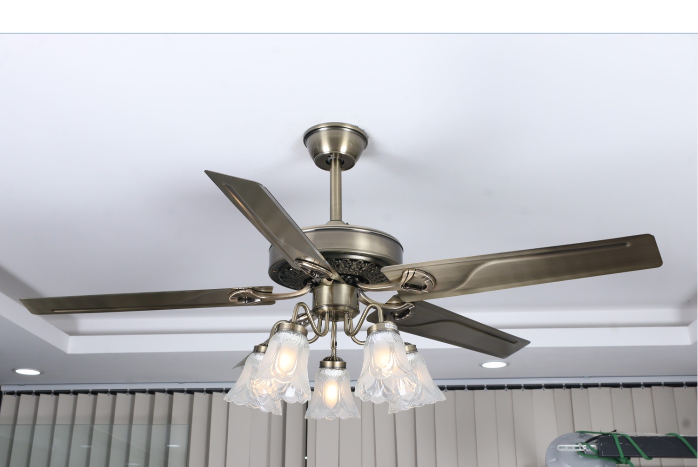 Quạt sử dụng 5 cánh quạt được làm từ chất liệu kim loại, cùng bộ đèn tiết kiệm điện với 3 màu ánh sáng trắng, vàng, trung tính. Tạo nên không gian sang trọng và ấm cúng cho căn phòng.