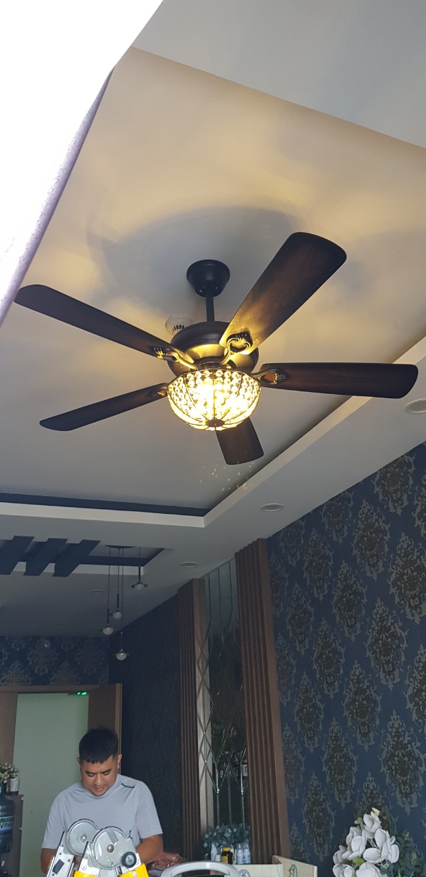 Quạt trần đèn chùm QViFa – 92 ấn tượng với 5 cánh quạt cùng với đèn chùm phía dưới. Quạt thiết kế theo phong cách cổ điển tạo cảm giác gần gũi sang trọng, tạo hình cánh quạt bằng gỗ. Quạt dễ kết hợp với nhiều không gian khác nhau, góp phần tạo điểm nhấn cho ngôi nhà của bạn.